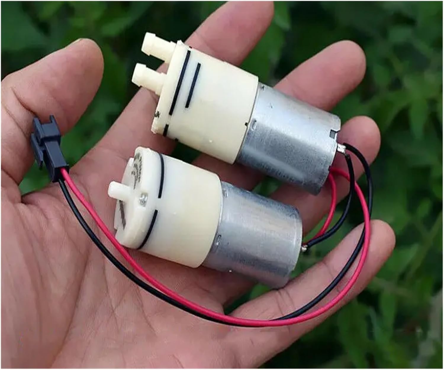 PumpsSpecification:370 motor suction water pump and 370 motor air pump. Both pumps are connected to the same terminal.One set includes two pumps. Total weight is 120 grams.1. 370 air pump test:Voltage: 12V Current: 23mAVoltage: 24V Current: 41mA2. 370 water pump test:Voltage: 12V Current: 130mAVoltage: 24V Current: 250mA3.Weight: 120gPackage Included:Mini air pump x 2 pcs (air pump + water pump)