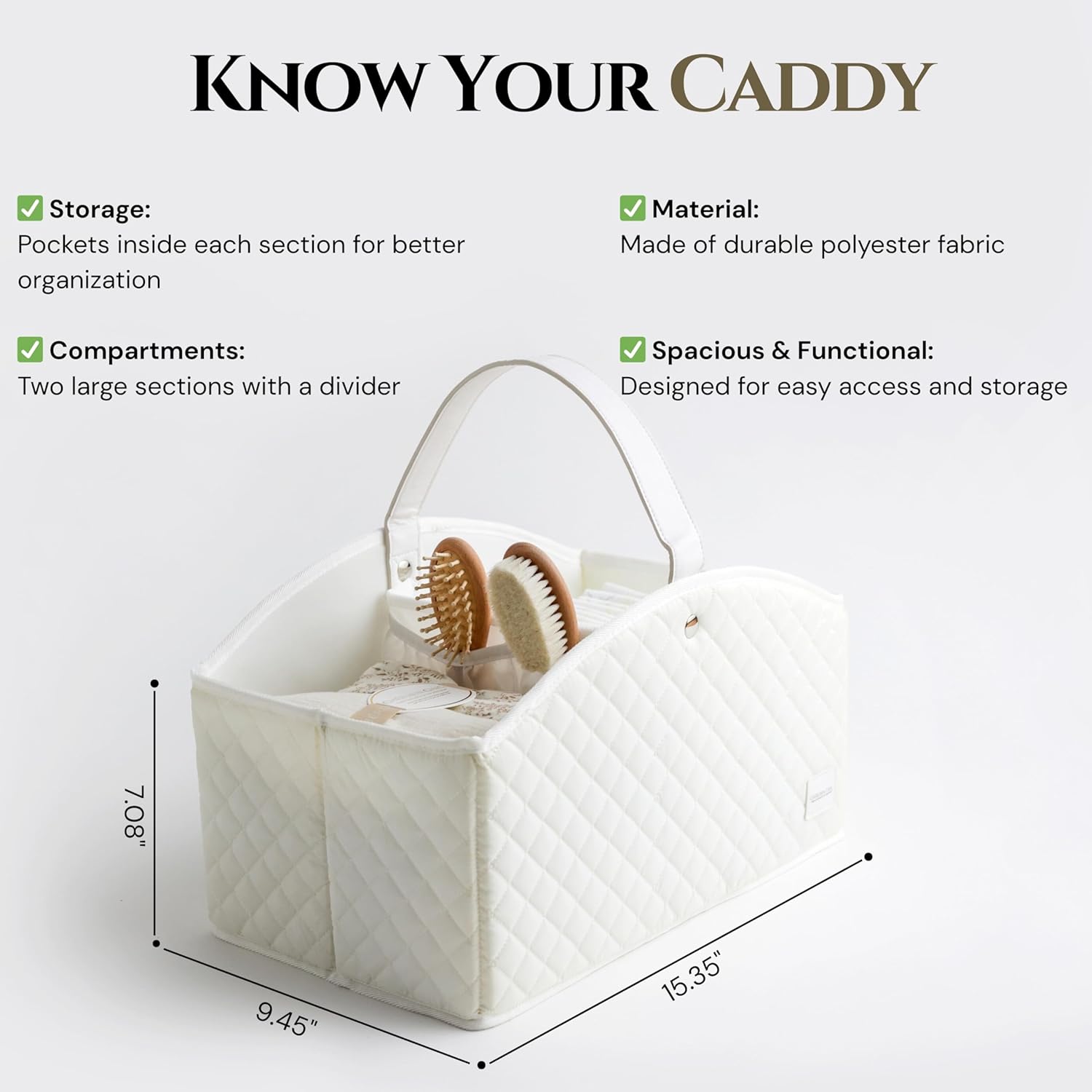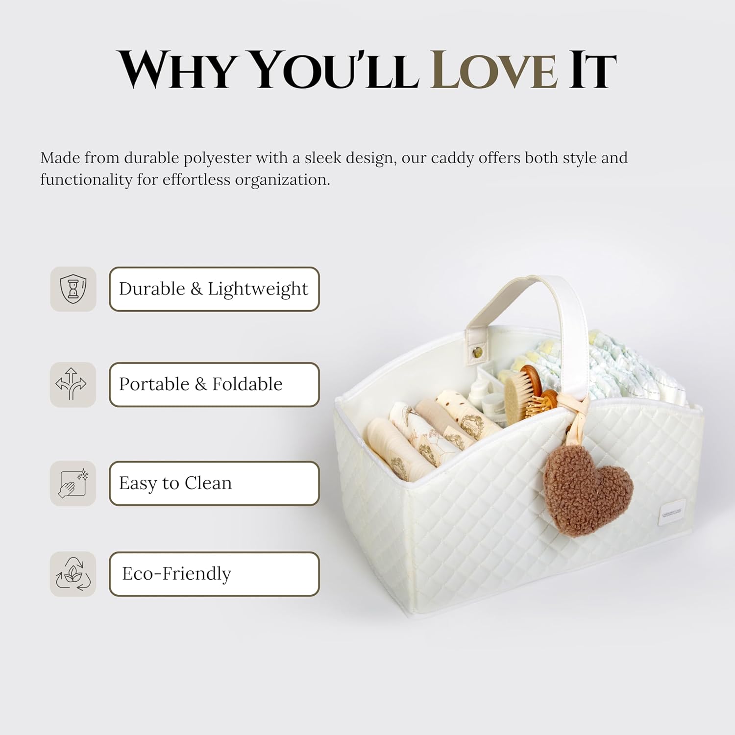 Cherubin Chic Baby Diaper Caddy is the ultimate solution for nursery organization, offering ample space to store baby wipes, baby bottles, diapers, and more. This versatile baby basket, featuring a convenient caddy organizer with handle, ensures that all your baby supplies are easily accessible in any room, from the nursery to the living room. Perfect for new moms, it keeps your space neat while adding a stylish touch to your baby nursery decor. Whether used as a baby shower basket, baby gift basket, or part of your baby registry, this diaper caddy basket is a must-have. It also doubles as a diaper tote for on-the-go parents or a car diaper caddy, making it ideal for any situation. With its neutral design, this organizer is perfect for all baby items and blends seamlessly with any nursery theme