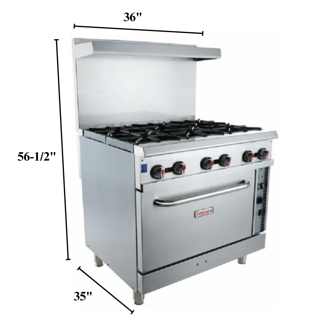 EMPURA 36" Freestanding Natural Gas Range | Cooking Stove with Single Convection Oven and (6) Cast-Iron Burners for Kitchen Hotel Restaurant | 211,000 BTU | 36"W x 35"D x 56-1/2"H, Stainless Steel