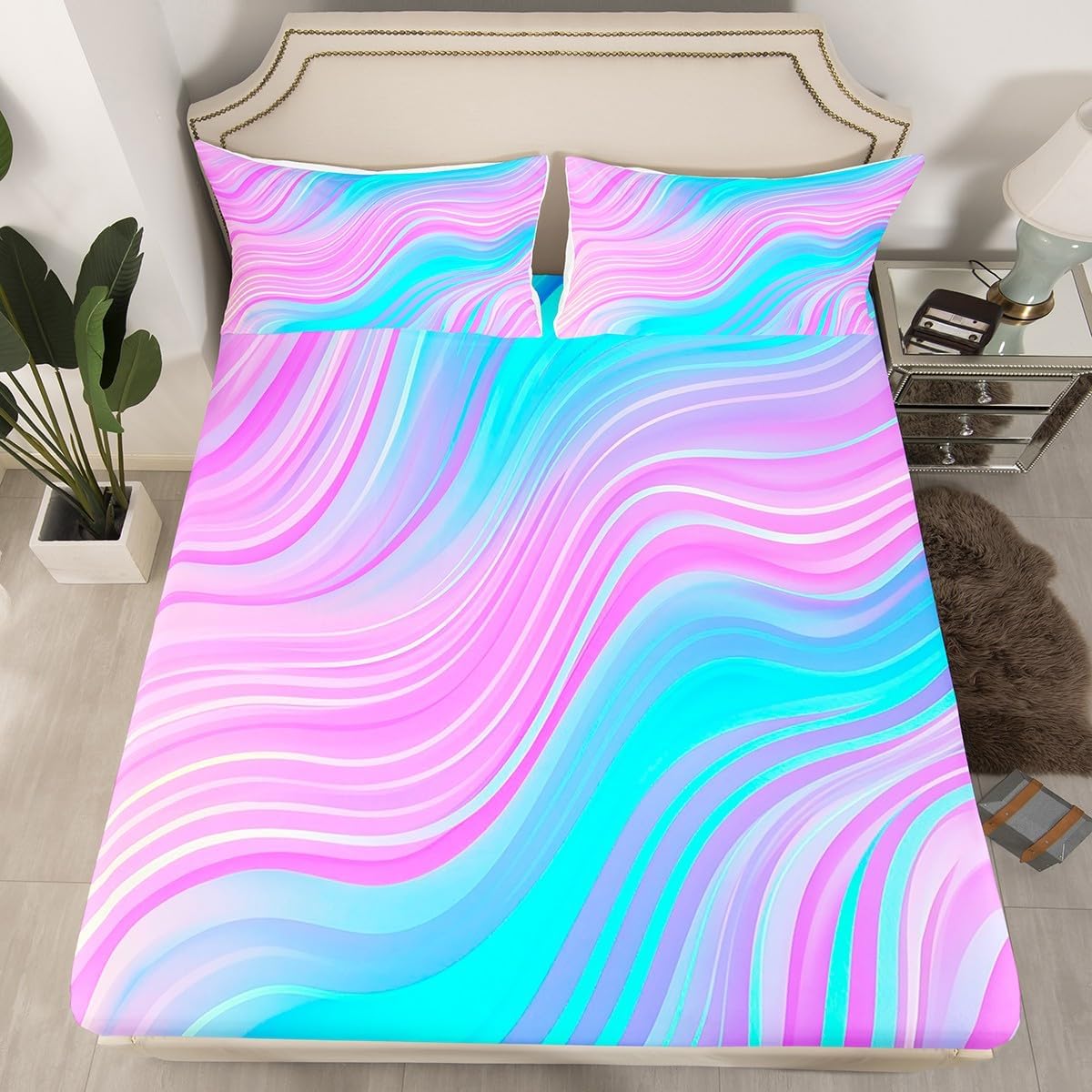 Welcome to our store We have specialized in home textile for many years,We are contribute to provide good customer service and products Size Information Twin size : 1 Fitted Sheet 39""Wx75""Lx16""H 100x190x40cm and 1 Pillowcase 20""Wx30""L 51x75cm Full size : 1 Fitted Sheet 54""Wx75""Lx16""H 38x191x40cm and 2 Pillowcases 20""Wx30""L 51x75cm Queen size : 1 Fitted Sheet 60""Wx80""Lx16""H 152x203x40cm and 2 Pillowcases 20""Wx30""L 51x75cm Versatility We have many kinds of styles for you to choose,You can easily find a product that suits the style of your room The item is not only good for your bedroom, guest room,Rv Bunk,but also a great present for birthday for Your Families, Friends,Relatives Kids Modern Design The luxury aesthetic bedding set is made by reactive printing and dyeing process,The pattern is clear,the color is lasting and bright,which will not fade after repeated washing Personalized As a manufacturer of digital printed home textiles,we follow current trends and bring you the latest and stylish home textile products The item will make the room decorated in exquisite taste Our Wish We sincerely hope you'll love the bed set