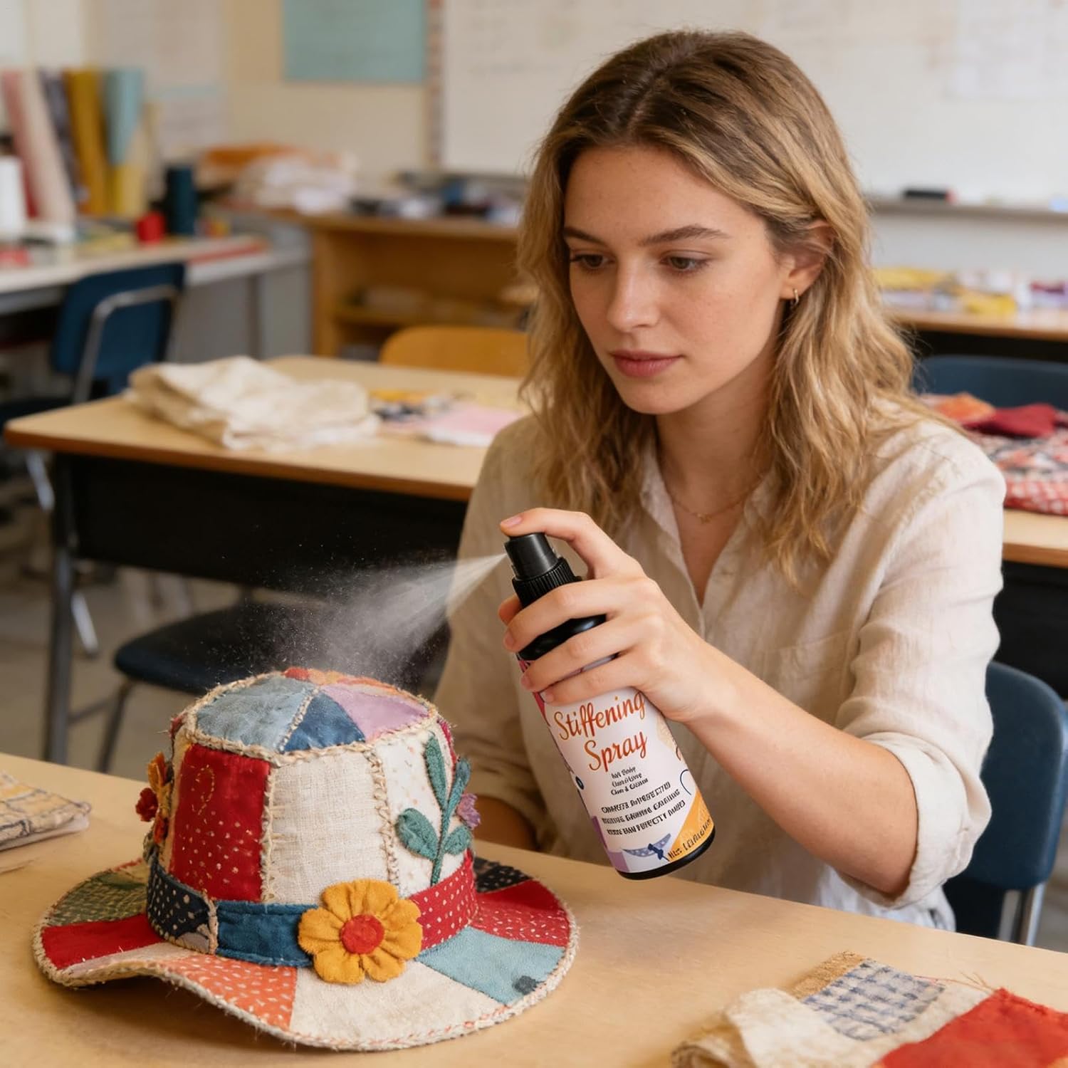 Hat stiffener spray is a versatile solution designed to provide fast-acting support for a variety of fabric-based projects. This hardener is ideal for maintaining the shape and structure of hats, especially those made from delicate materials like lace, wool, felt, and crochet. Whether you are working on craft projects or restoring clothes, this spray ensures your creations retain their intended form without compromising the fabric's integrity. It is effective for stiffening fabrics used in millinery and other imaginative endeavors.SpecificationProduct Name: Fabric Hardening SpraySpecifications: 100mlProduct size: note as per pictureWeight: about 110gPack List:Fabric stiffener*1Note:Due to different lighting and screen settings, the item color may be slightly different from the picture.Due to different manual measurements, please allow a 1-2cm difference in size.