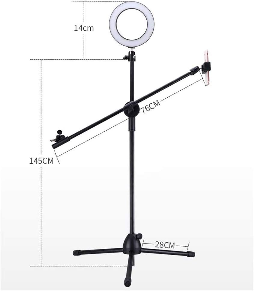 Colour:Black: Phone Tripod Stand MountMaterial: metal, plasticSize: as shownSuitable for: live, outdoor, travel, indoorFeatures: 360° rotationRemote control, take pictures remotely, don't worry about taking someone to take pictures, help press the shutter], with it, you can take selfies remotely with just clickMake-up live beauty fill-in, take pictures of gourmet food, easy shooting without fear of shaking the screen.The horizontal bar stretches freely up and down-a bracket that makes you feel more relaxed.Features full cross-device compatibility with phones, action cams, and 360° cameras. For studio, field, and travel