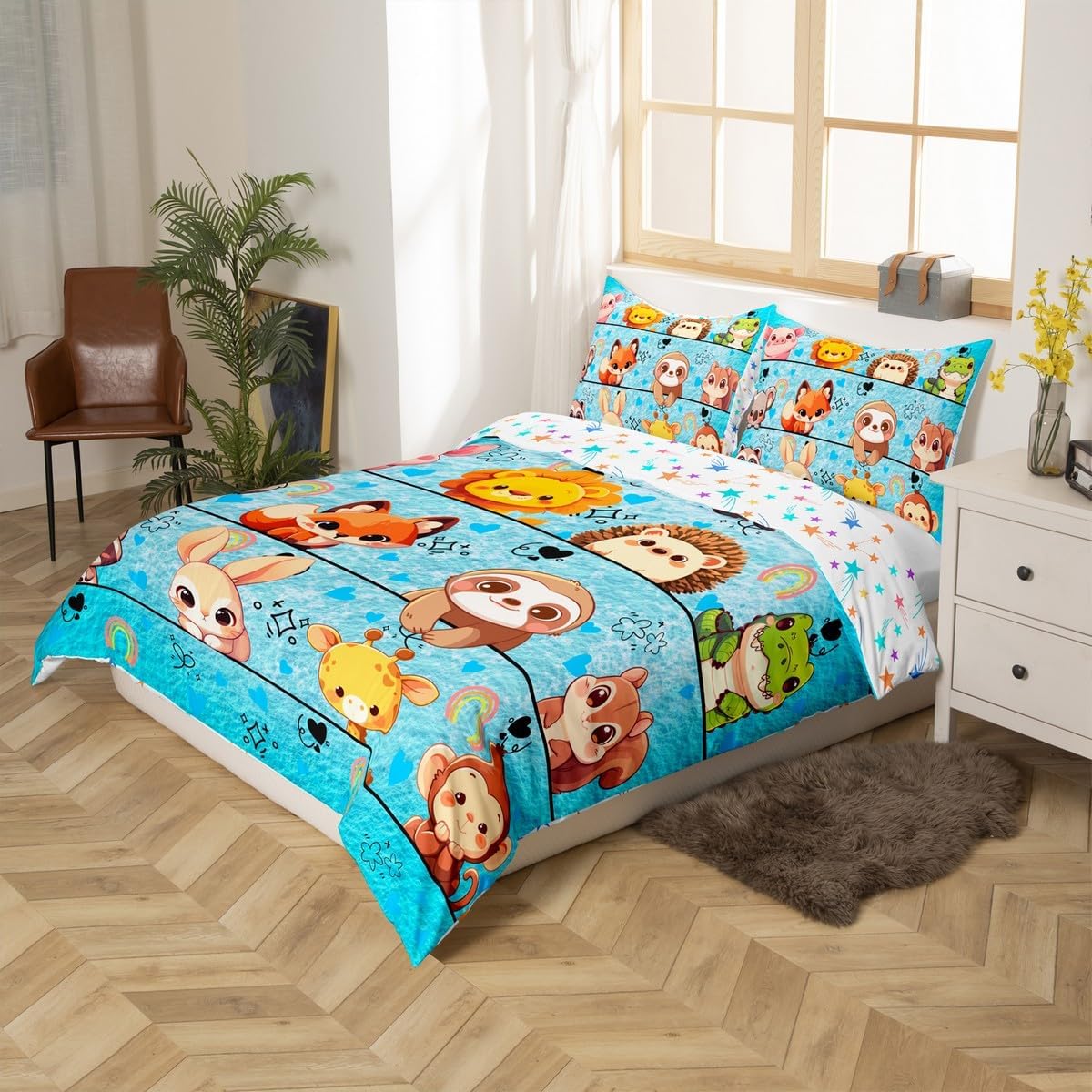 Package Include: Duvet Cover and Pillowcase. High quality Duvet Cover 3D Pattern Bedding Set, simply decorating your rooms any time you want, bringing you fresh feel for year round use. Size Information: Toddler size 2pcs duvet cover set: 1 Duvet Cover 42" x 58", 1 pillowcase 20" x 30". Without Comforter. Twin size 2pcs duvet cover set: 1 Duvet Cover 68" x 90", 1 pillowcase 20" x 30". Without Comforter Full size 3pcs duvet cover set: 1 Duvet Cover 80" x 90", 2 pillowcase 20" x 30". Without Comforter Queen size 3pcs duvet cover set: 1 Duvet Cover 90" x 90", 2 pillowcase 20" x 30". Without Comforter King size 3pcs duvet cover set: 1 Duvet Cover 104" x 90", 2 pillowcase 20" x 36". Without Comforter Personalize your bedroom: Beautiful design and colorful print, makes your bedroom unique and brings you a wonderful dream. Washing instructions: Machine wash separately in cold water,hang dry, do not bleach. Occasion: The cute soft duvet cover bedding sets designed for Children ,Adult, Men, Women, Teens. This duvet cover set is also suitable for full seasons, Spring, Summer, Autumn and Winter.