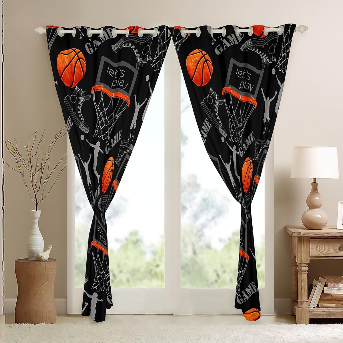 Orange Basketball Curtains for Living Room,Sports Ball Games Blackout Curtains,Hobby Activity Curtains & Drapes 2 Panels 38"Wx45"L,Basketball Hoop Window Curtains Basketball Court Print Decor Black