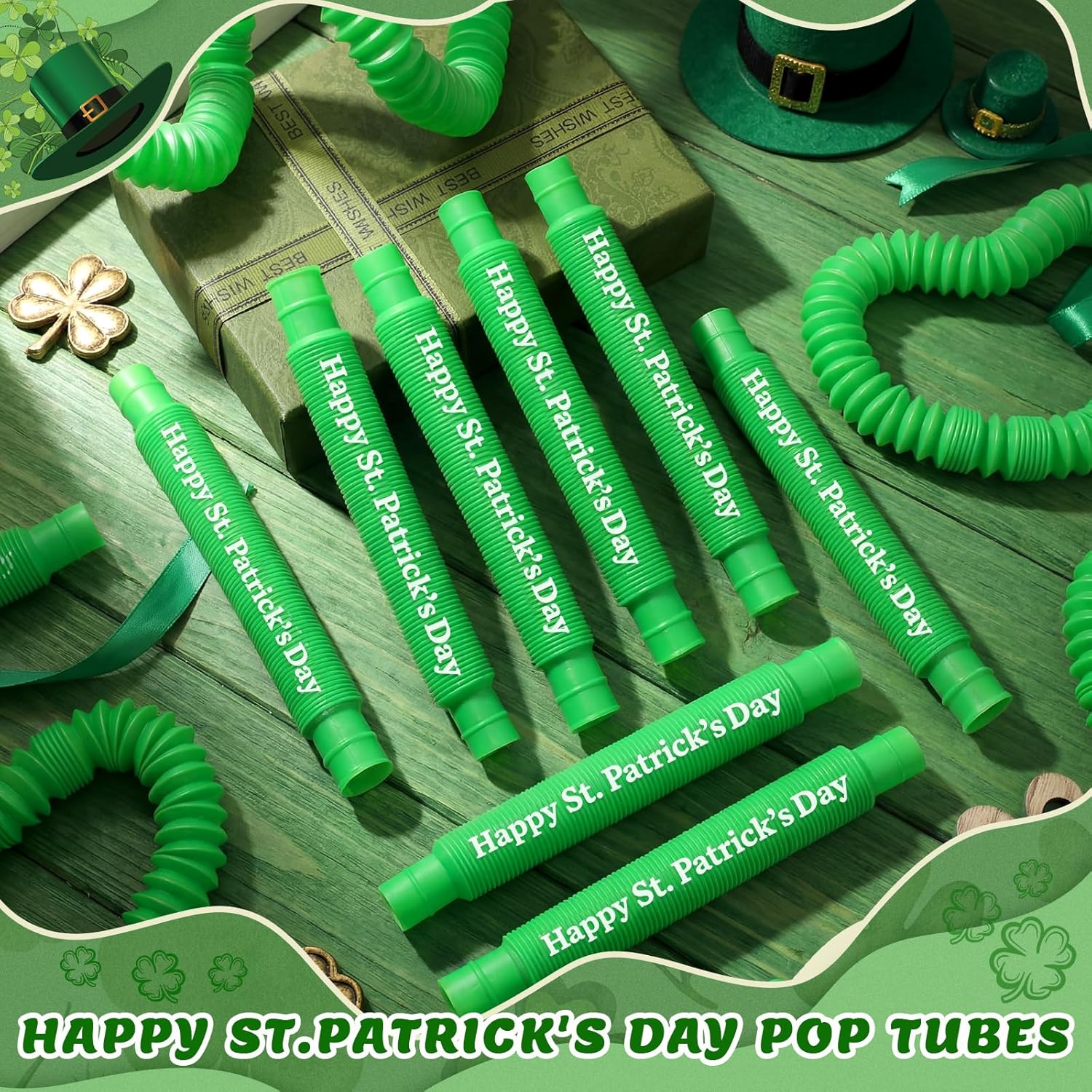 Features: These sensory tube toys can be freely shaped and make sounds, making them both fun and stress-relieving. These pop tubes come in a sufficient quantity to meet your needs, and you can also share them with your friends and family. Specifications: Material: plastic Color: green Size: about 5 inches long and 0.75 inches in diameter Package includes: 64 x Happy St. Patrick's Day pop tubes Notes: Manual measurement, please allow slight errors on size. The color may exist a slight difference due to different screen displays Suitable for people over 6 years old, and it's recommended to use under the supervision of adults in case of choking risk