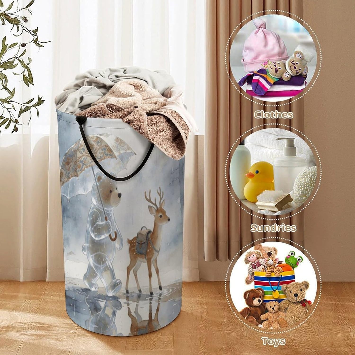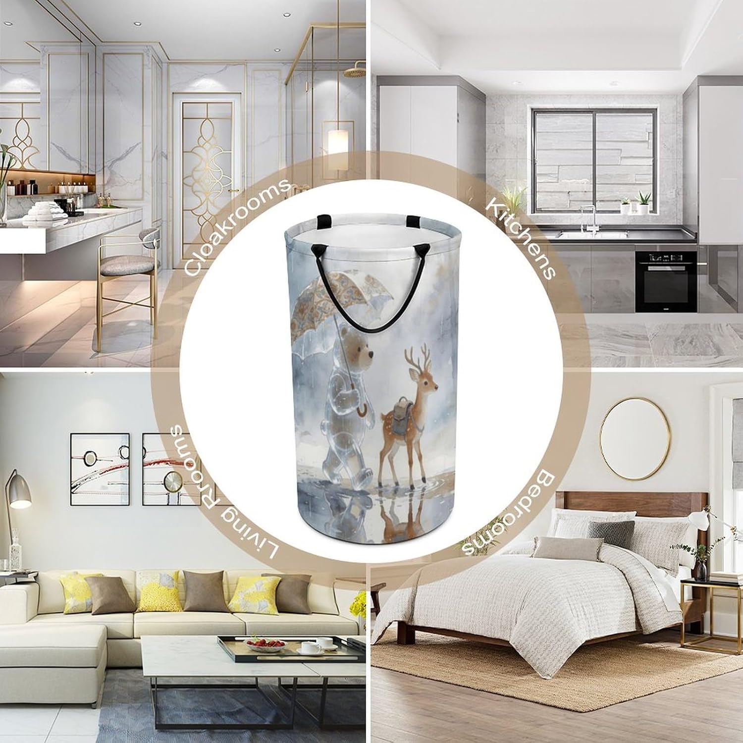 The pattern of the Walking Together on A Rainy Day hamper is printed with exquisite patterns, which makes the product more attractive.Chic design allows it to be used in the living room to hold throw blanket, pillows, and reading materials, as well as in the bathroom for towels, or as a laundry hamper.The laundry hamper adopted collapsible design, equipped with handles. It is lightweight and portable for using, storing, and moving conveniently.Walking Together on A Rainy Day Clothes hamper is suitable to store dirty clothes washing, place in the room to store toys, and other household goods, keep the house clean and tidy. Perfect laundry hamper for home, office, closet organizer, bedroom, bathroom, college dorm, etc.Gets out of your way when you need it to. This storage basket or laundry hamper is a good gift, which not only meets everyday storage needs but also carries deep care and love, a perfect way to turn thoughtfulness into warmth.