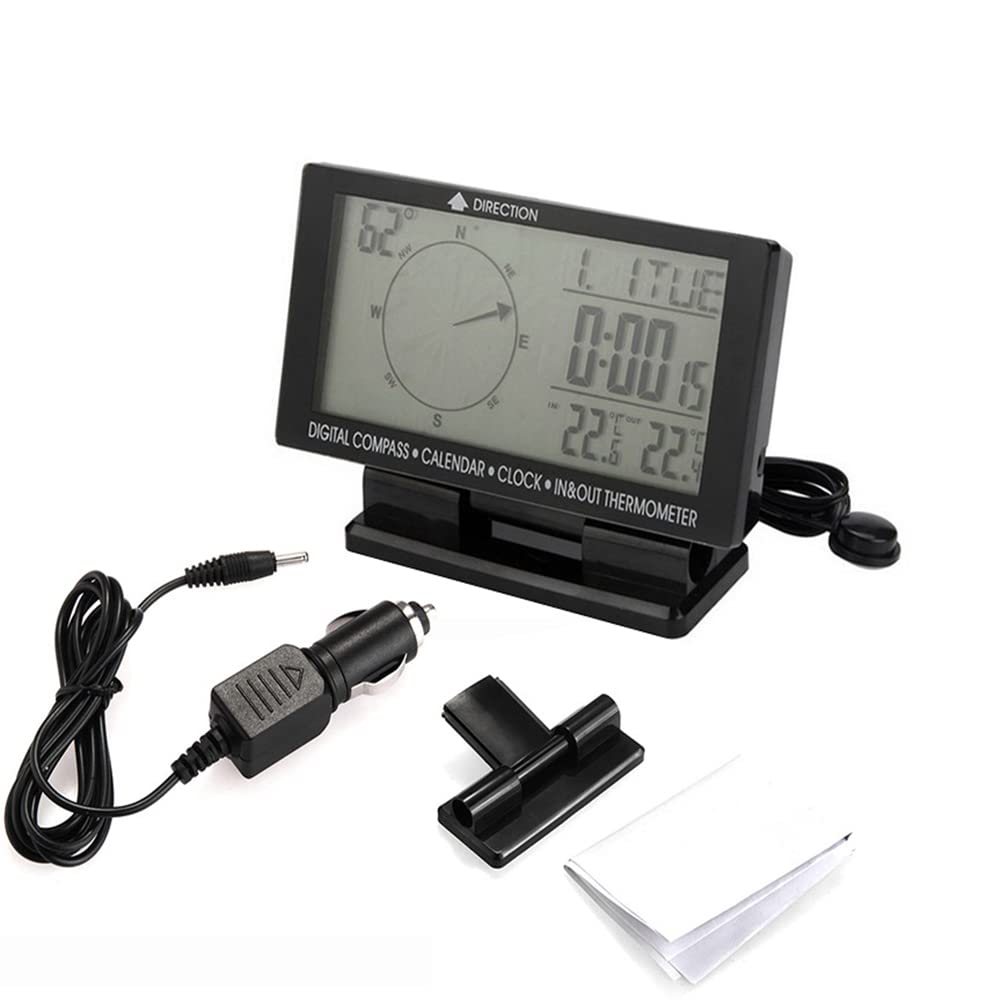 Specification:Material: PlasticColor: BlackDisplay size: 4.6inch/11.68cmDisplay Type: DigitalOverall size: 126*66*20mm/4.96*2.60*0.79inchCompass angle range: 0-360 degrees, accuracy ±8 degreesTempeure display unit: °C/°FTempeure measurement range: Indoor: -10-+60°C (4-140°F) Outdoor: -50-+70°C (-58-158°F)Backlight Color: BlueDisplay mode: digital displayTime display type: 12-hour mode/24-hour modePackage Included:1pcs*Digital Car ThermometerAccessories(As Shown In The Picture)
