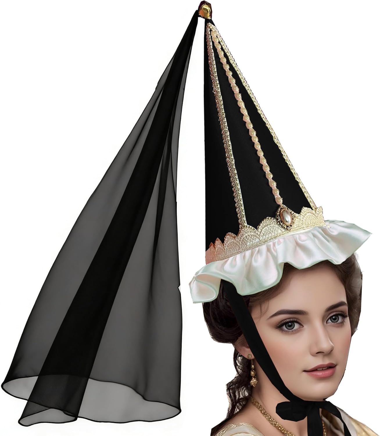 Womens Medieval Hennin Hat with Veil,Cone Pointy Hat for Halloween Christmas Renaissance Costume Party