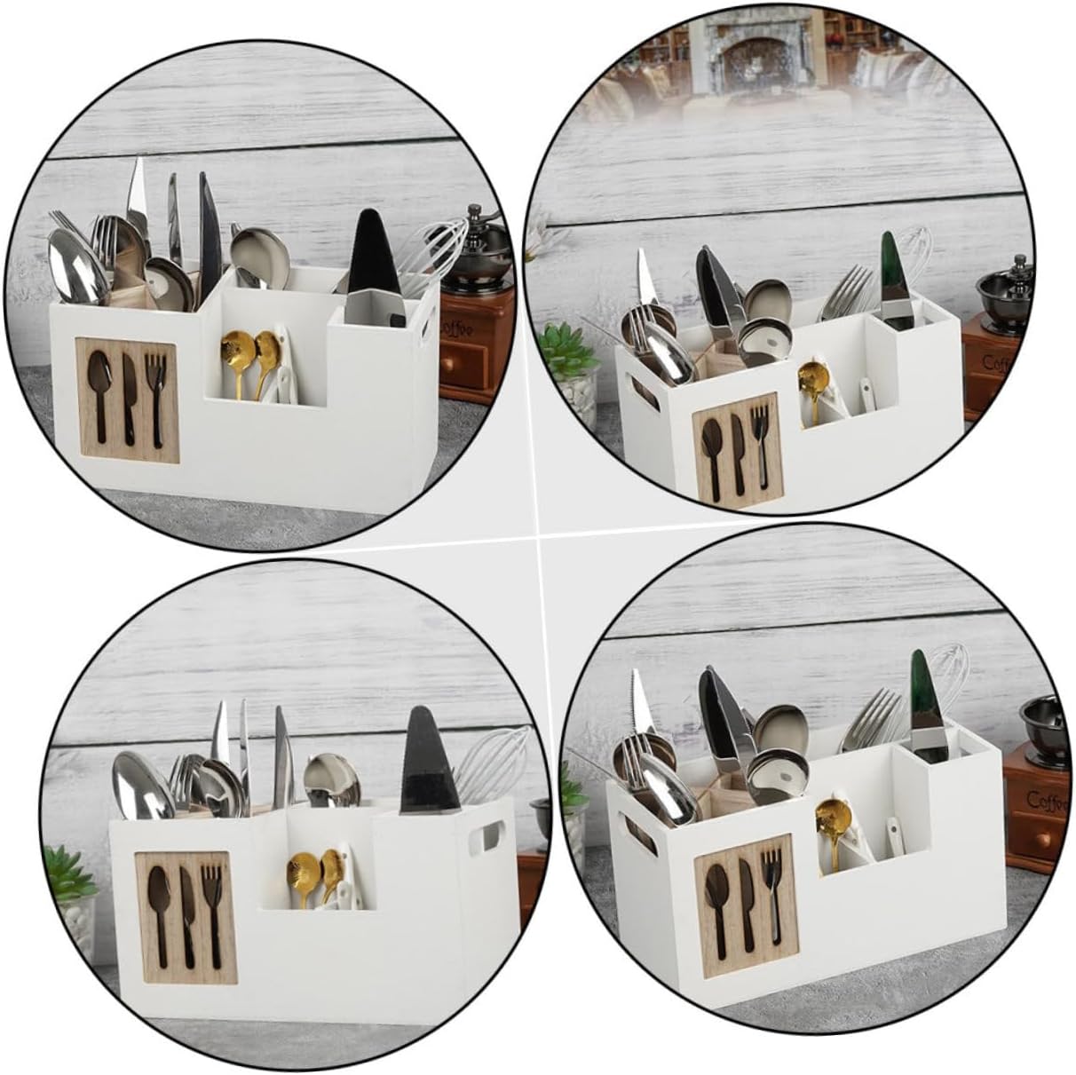 Package List 1 x cutlery organizer Characteristics -Color: White, Khaki Wood Holder -Material: Wood Chopsticks Organizer -Size: About 28.00X15.00X12.00cm/11.00X5.89X4.72inch Chopsticks Holder - This cutlery holder is scratch-resistant and easy to clean, bring more convenience Utensil Organizers. - With beautiful and appearance will its popularity and practicability Spoon Holder. - Also can be a decoration for your kitchen, can increase a kind of special atmosphere at your kitchen Utensil Holder. - Made of , and for long term use Kitchen Organizer. - Suitable for storing and keeping cooking utensils accessible and tidy on the counter-top Utensil Organizer.Goods DescriptionChopsticks Organizer For example, you can store chopsticks, forks and spoons.Cutter Holder Your kitchen will not be messy again.Spoon Holder The cutlery holder is made of material, and .Kitchen Utensil Holder They can neatly organize your tableware.Spoon Organizer Our utensil holders are essential tools in the kitchen